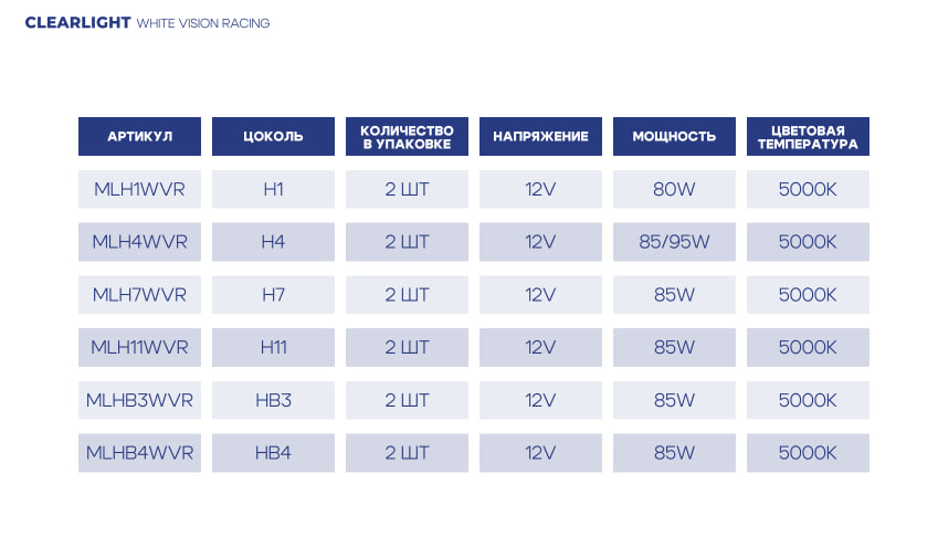 —Автолампы Clearlight H1 12V-80W WHITEVISION RACING