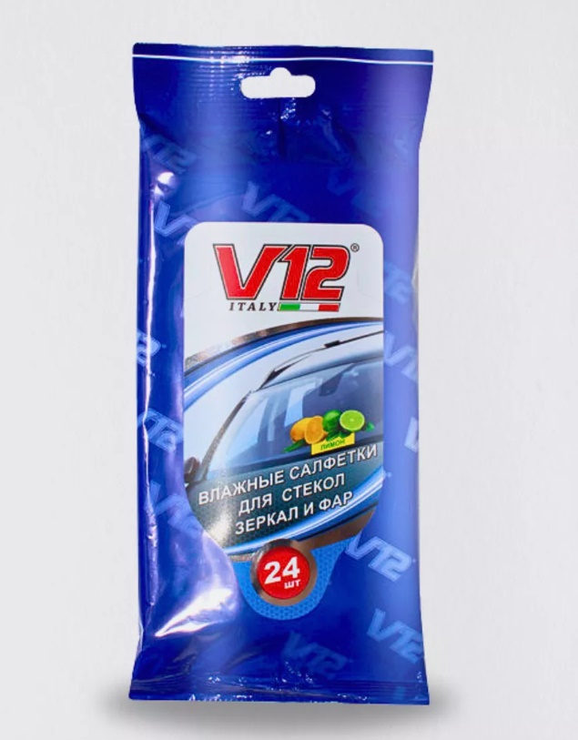 Влажные салфетки V12 для очистки стёкол, зеркал и других стеклянных элементов. Быстро и легко удаляют грязь, придают аромат свежести, улучшают видимость, не оставляя полос. продукт не содержит спирта.