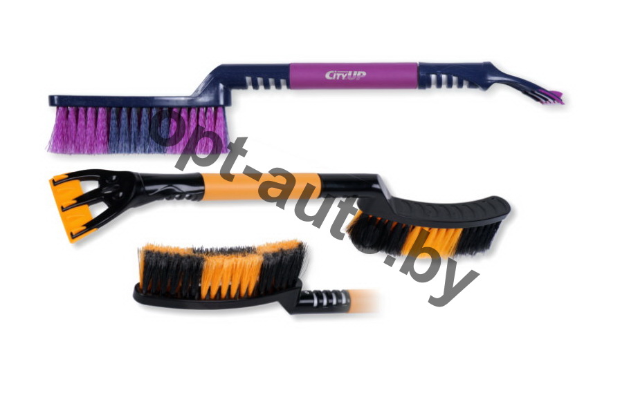 Щетка для снега со скребком. Новейшая разработка эргономичных щеток. Для удобства пользования голова щетки имеет изогнутую в двух плоскостях форму. Роскошная, распушенная щетина, дюралевая ручка, технология двойной экструзии, спецполимеры делают щетку инновационным продуктом сезона 2014